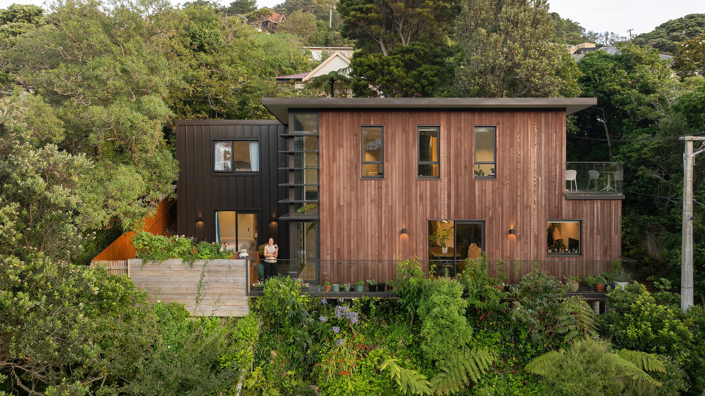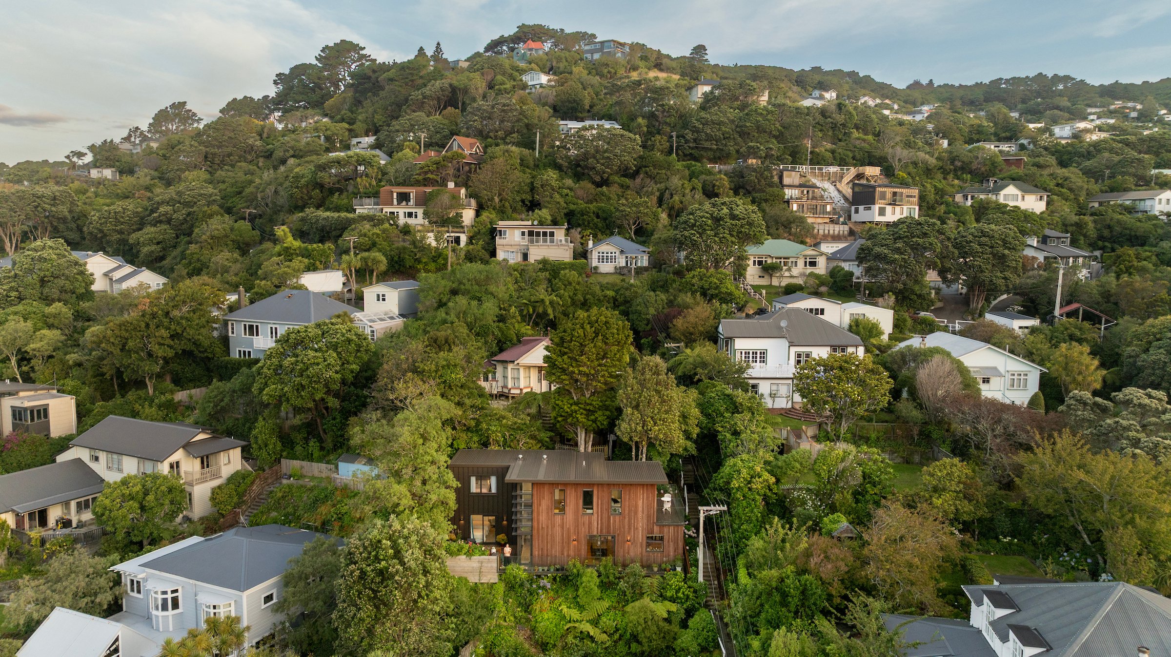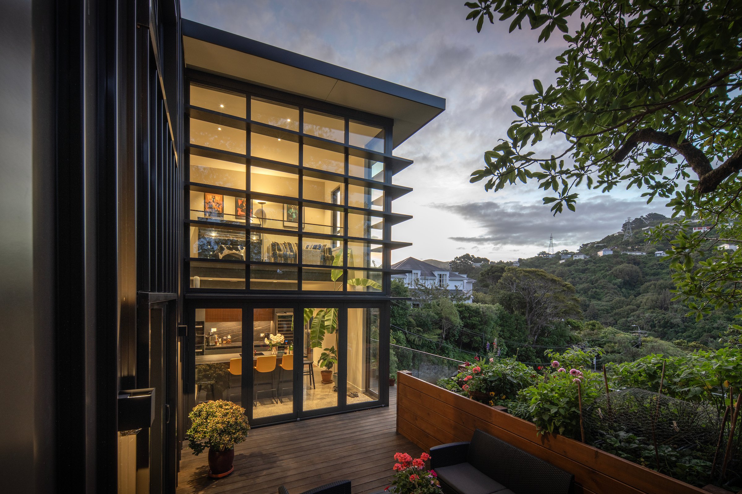 This is a new house on a newly created greenfield section in Wilton. The house is comprised of SIP panels, with a combination of profiled metal and vertical cedar shiplap.